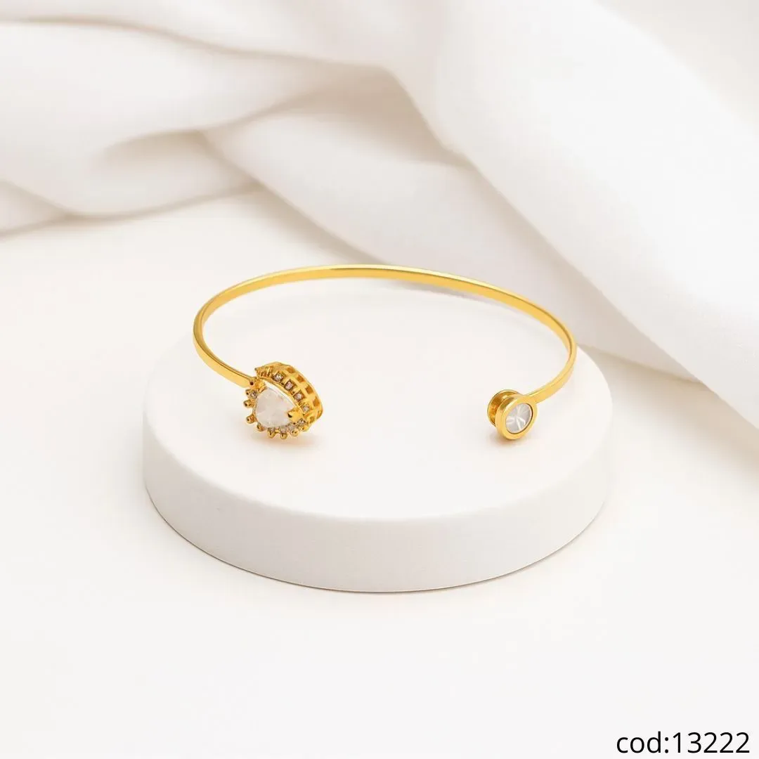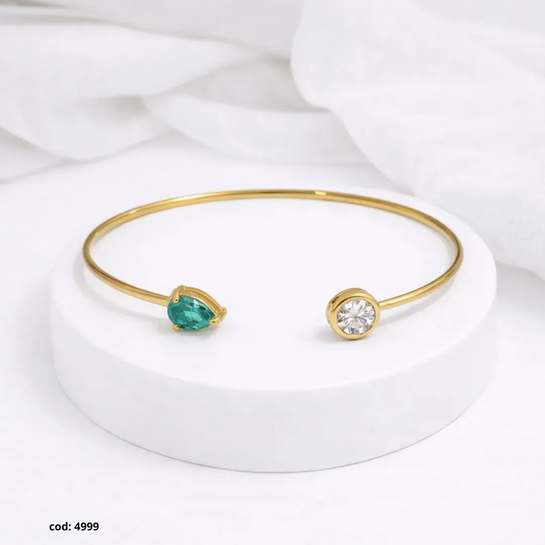 Pulseira Dourada Aberta com Pedra