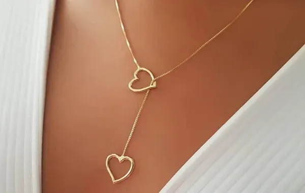 Colar Gravatinha Coração no Terminal Folheado a Ouro 18K
