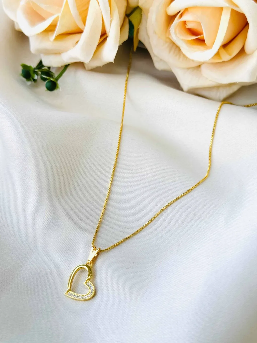 Colar Coração Vazado com Zircônia Folheado a Ouro 18k com 2 Milésimos