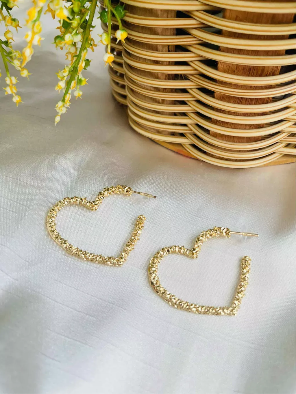 Argola de Coração Texturizada Folheado a Ouro 18K