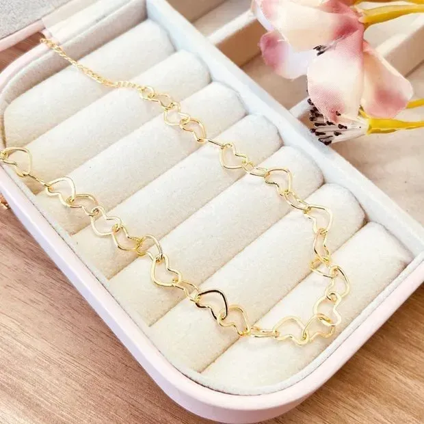 Choker Coraçõezinhos Folheada a Ouro 18K