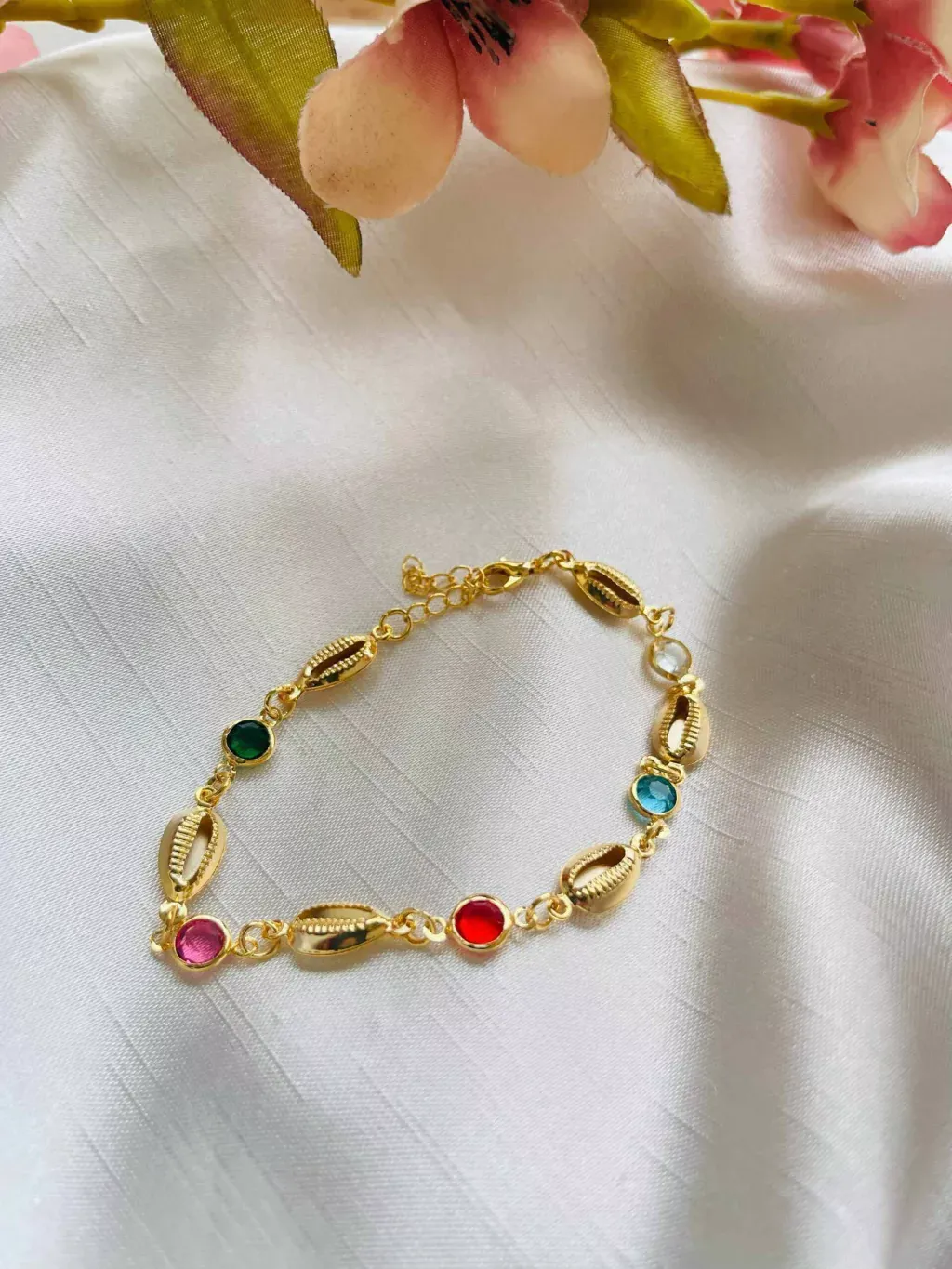 Pulseira Buzios e Cristais Coloridos Folheado a Ouro 18K