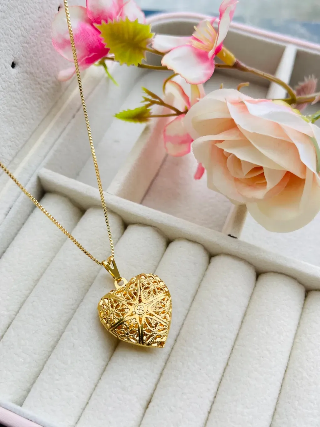 Colar Relicário de Coração M Folheado a Ouro 18K